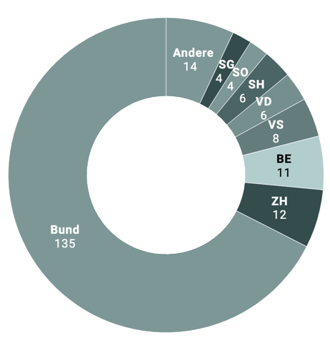 Die Auswertung der Transparenz-Geschichten aus Print, Online, Radio und TV zeigt weiter, dass seit 2006 vor allem Themen der Bundesverwaltung mithilfe eines Öffentlichkeitsgesetzes von Medien vertieft worden sind. Vergleichsweise wenige solcher Beiträge sind in den Kantonen realisiert worden.
