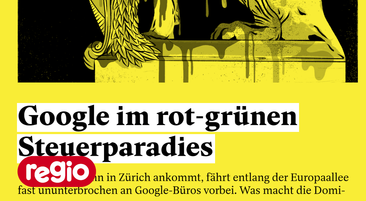 Die «Republik» untersucht in einer 10-teiligen Serie die Aktivitäten des US-Tech-Riesen Google in Zürich. Unter anderem zeigen Dokumente der Zürcher Verwaltung, wie die Stadt- und Kantonsbehörden dem Konzern entgegenkommen, um den Standort attraktiv zu machen. Dies beinhaltet Anpassungen wie erleichterten Familienzuzug und in manchen Fällen zusätzliche Arbeitserlaubnisse für unverheiratete Partner. |
