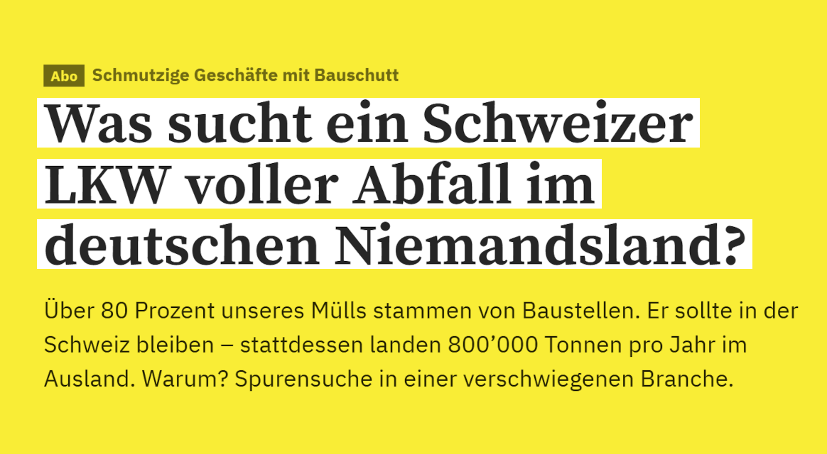 Schmutzige Geschäfte mit Bauschutt: Was sucht ein Schweizer LKW voller Abfall im deutschen Niemandsland?