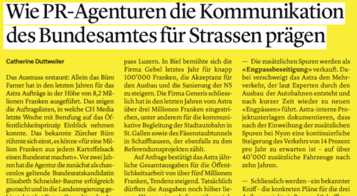 Wie PR-Agenturen die Kommunikation des Bundesamtes für Strassen prägen