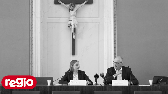 Jetzt wird in Zug öffentlich, was auch hinter verschlossenen Türen gesagt wurde: Regierungsmitglieder Laura Dittli und Heinz Tännler. (Foto: Urs Flüeler/Keystone)
